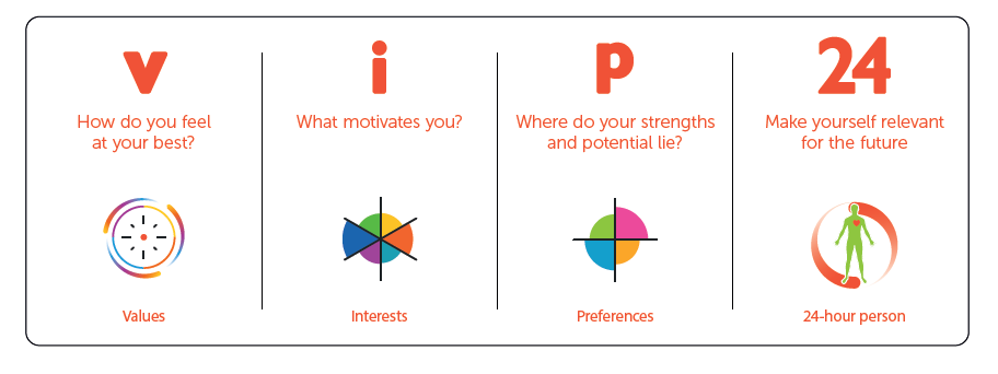 Vip24 geeft inzicht in je talenten, vaardigheden en je waarden en laat zien waar iemand écht voor staat.